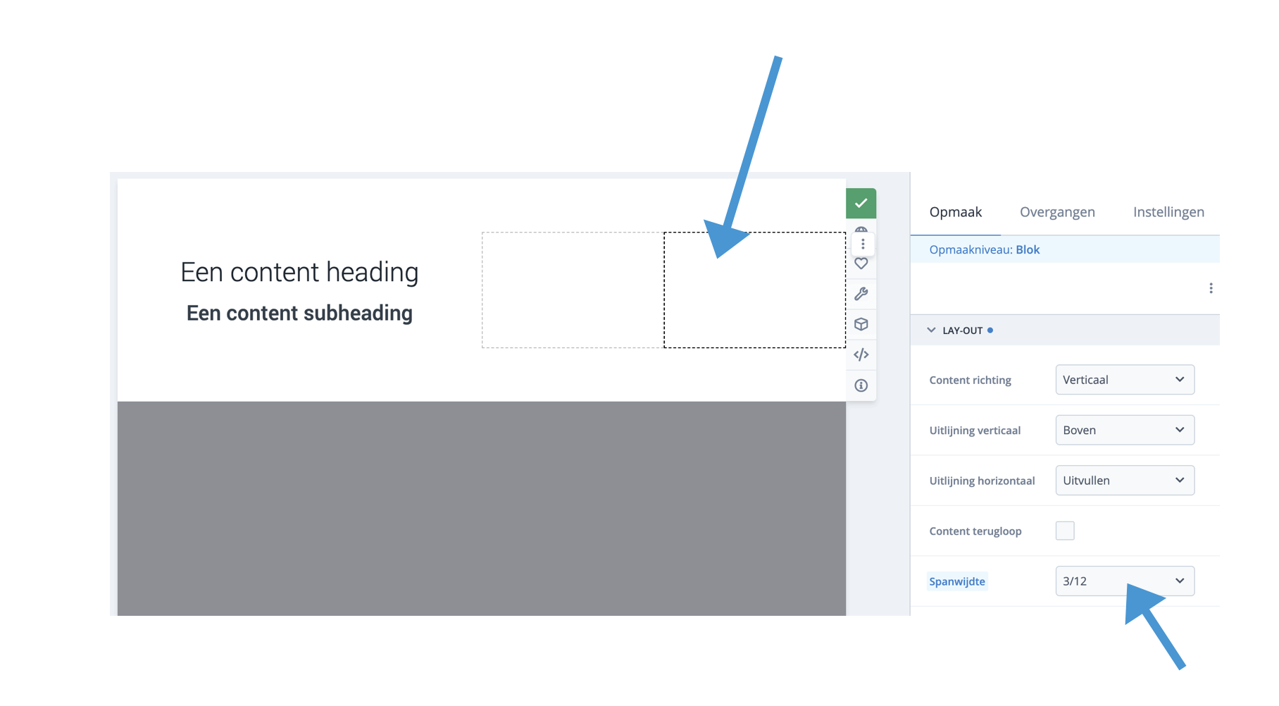 De breedte van de kolom kan aangepast worden door een andere spanwijdte te kiezen. In het voorbeeld hieronder is gekozen voor een spanwijdte van 3 (3 van 12).
