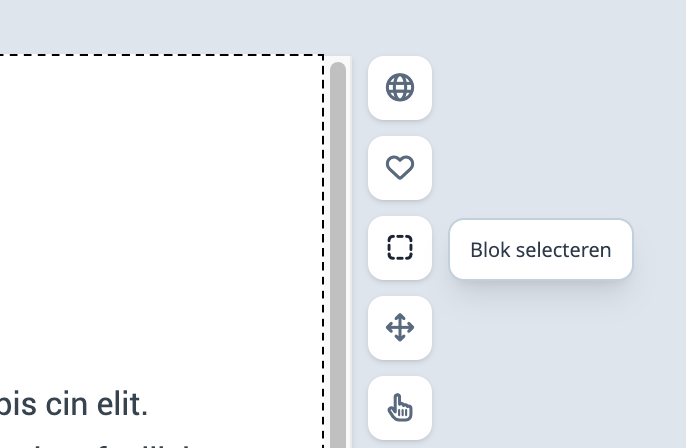 Blokken kunnen verwijderd worden van een pagina door gebruik te maken van het blokmenu dat getoond wordt aan de rechterzijde van een blok.