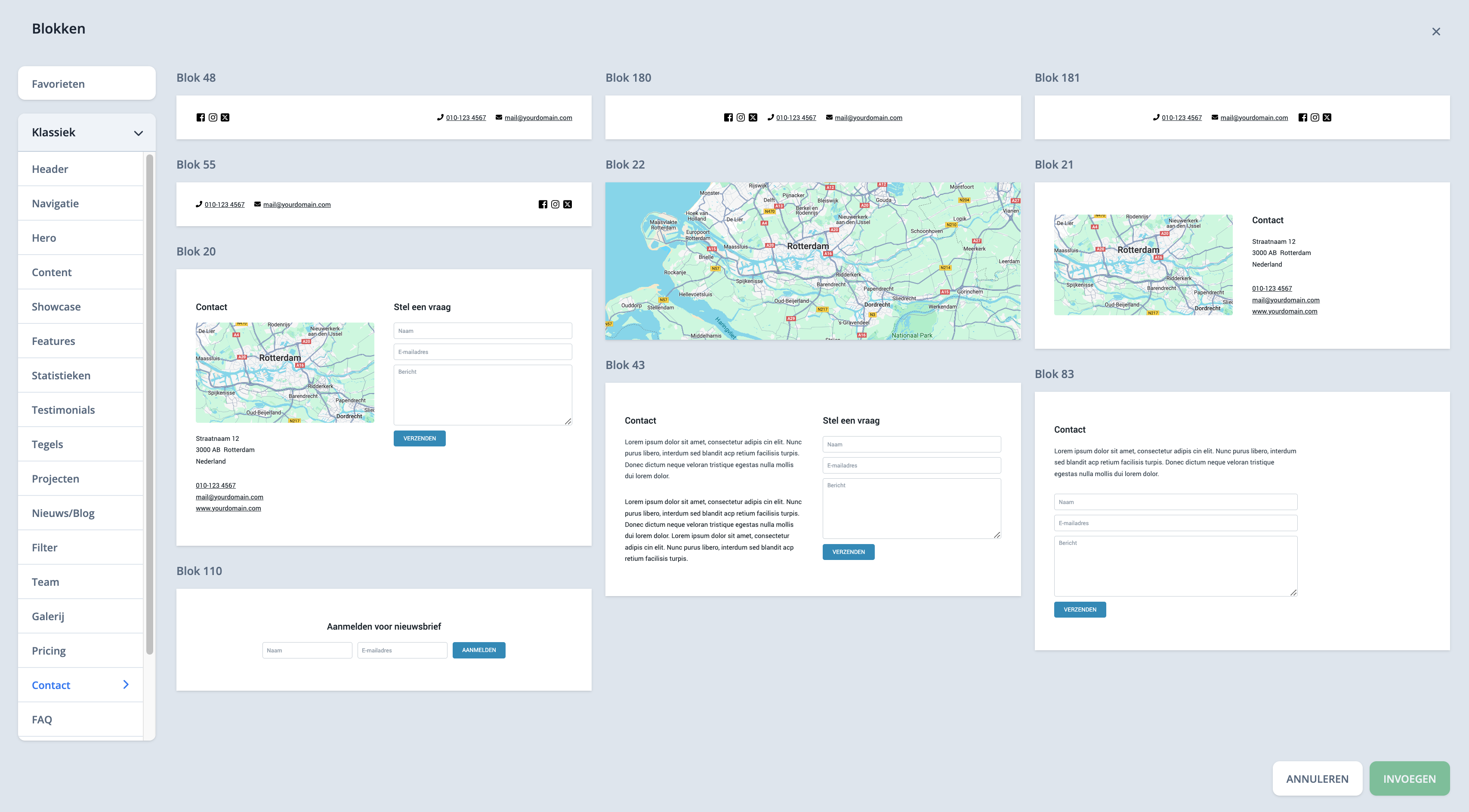 In Bureau van den Oever zitten verschillende blokken waarin een formulier opgenomen is. Je vindt deze blokken in de categorie "contact".