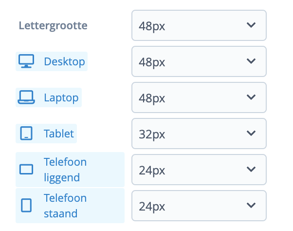 Ondanks dat de diverse blokken standaard responsive zijn in Bureau van den Oever kun je de opmaak per device finetunen. Zo kun je een tekst zeer groot tonen op de desktop en op smartphone kiezen voor een kleinere tekst of zelfs een ander lettertype. Onderstaande video toont hoe je per device de opmaak kunt finetunen.