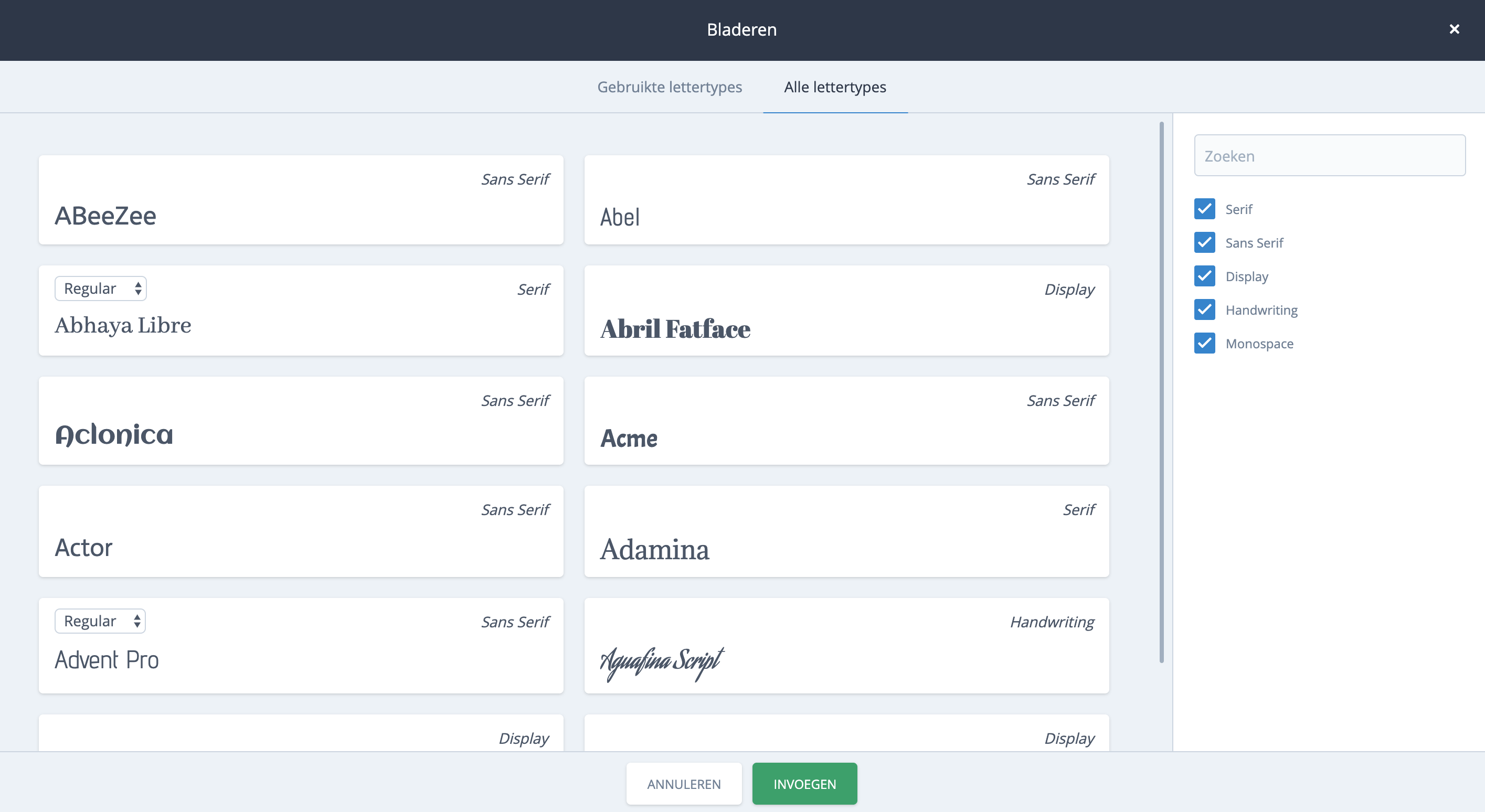 De lettertypes in Bureau van den Oever komen uit de uitgebreide Google Fonts bibliotheek. Kies uit de meer dan 900 beschikbare fonts en creëer de prachtigste websites.