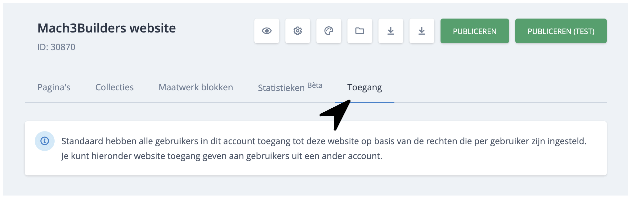 Een website kan gedeeld worden met een klant door deze te koppelen aan één of meerdere klantaccounts. Het is tevens mogelijk om een website te laten beheren door meerdere externe gebruikers.
